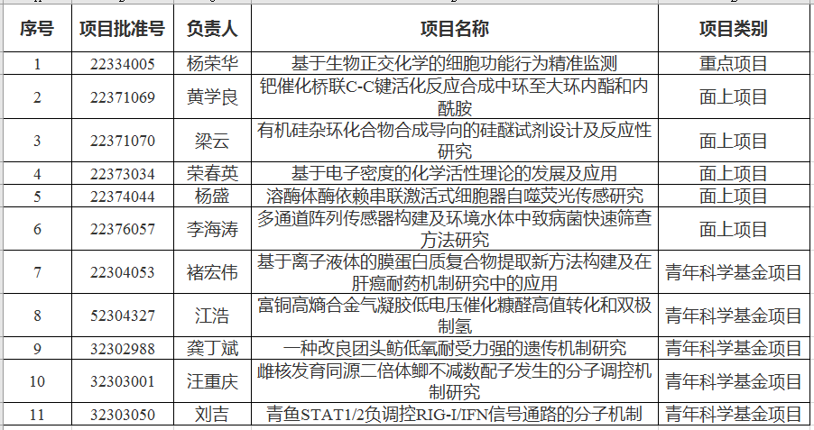8月24日,国家自然科学基金委员会发布了2023年国家自然科学基金集中接收申请项目评审结果,太阳网集团tcy8722共有多个项目获得立项资助,获批直接经费630万元。其中高显示度项目1项,实验室主任杨荣华教授主持的“基于生物正交化学的细胞功能行为精准监测”重点项目获得资助,直接经费230万元。