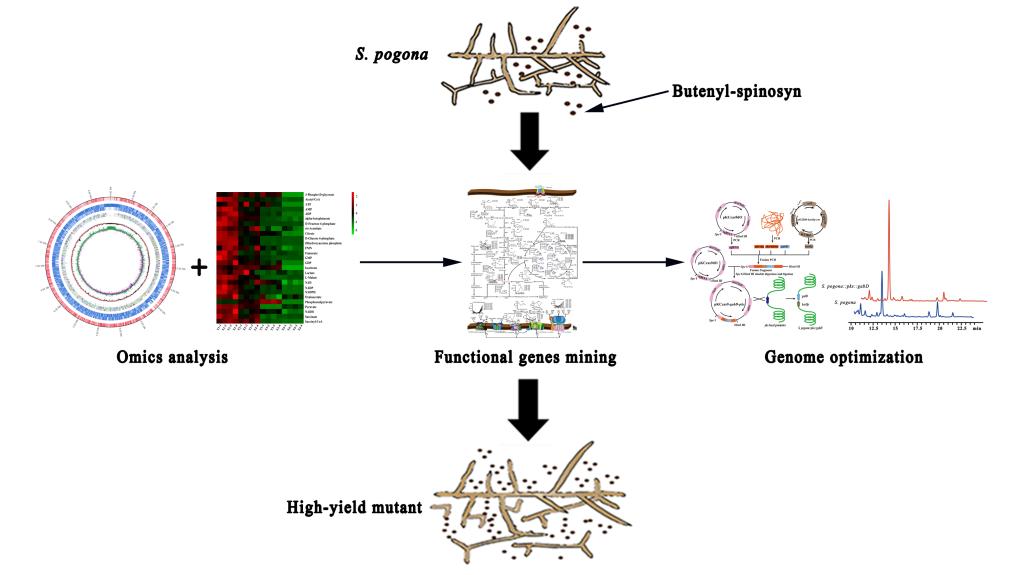由须糖多孢菌合成的丁烯基多杀菌素,因具有高效、广谱、低毒的杀虫效果,成为当前国际上最具发展前景的生物农药。然而,现有菌株丁烯基多杀菌素合成量极低,如何进一步提高其产量已成为当前该领域的研究热点。近日,我校太阳网集团tcy8722博士后研究人员穰杰博士(合作导师谢青季教授)在该领域的研究工作取得重要进展,最新研究论文“Promoting Butenyl-spinosyn Production Based on Omics Research and Metabolic Network Construction inSaccharopolyspora pogona”在《Journal of Agricultural and Food Chemistry》(农林科学Top期刊,JCR Q1,IF 5.279)在线发表(J Agric Food Chem, 2022, 70, 3375-3568),并被遴选为封面论文(Outside Front Cover)。该文中,穰杰博士基于联合多组学分析与组合代谢工程策略,对野生型须糖多孢菌开展了基因组、转录组与靶向代谢组分析,完成了丁烯基多杀菌素生物合成代谢网络构建以及重要功能基因时序表达分析,发现丁烯基多杀菌素聚酮合酶基因簇表达水平低和乙酰辅酶A等前体供应不足是限制野生型须糖多孢菌产量低的重要原因,并对涉及丁烯基多杀菌素生物合成的聚酮合酶基因簇以及前体供应的琥珀酰半醛脱氢酶基因进行过表达,明确其均能促进丁烯基多杀菌素生物合成。采用基因编辑对上述两个功能元件进行共表达,构建了一株工程菌使丁烯基多杀菌素产量提高了6.38倍,为促进丁烯基多杀菌素高效生物合成奠定了重要基础。该研究获得国家自然科学基金、国家国际合作重点项目和省自然科学基金等课题资助。