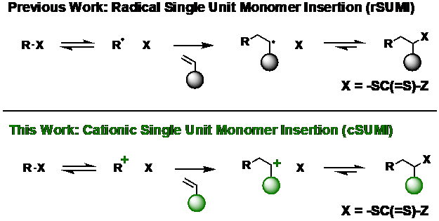 图1.自由基和阳离子单倍单体插入(SUMI)策略