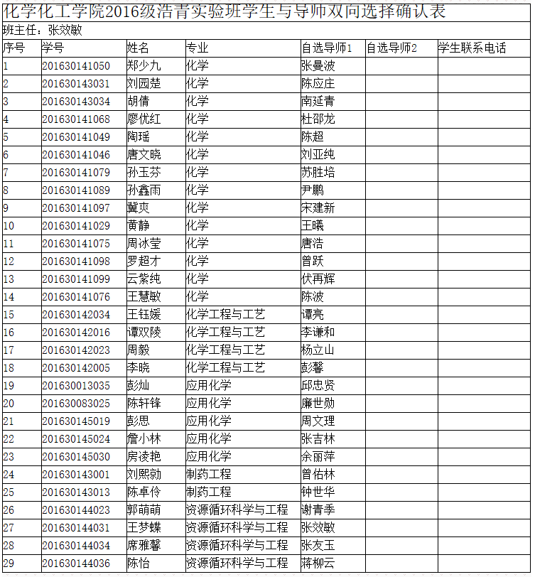 太阳网集团tcy87222016级浩青实验班学生与导师双向选择确认表