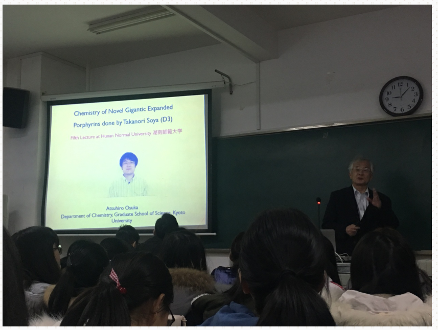 2019年2月28日上午9:00在化工院219教室,京都大学Atsuhiro Osuka教授为我院师生带来一场题为“Chemistry of Novel Gigantic Expanded Porphyrins”的学术报告,这也是Osuka教授在我院的第五次汇报。报告由我院徐凌老师主持,我院部分老师和研究生聆听了此次报告。