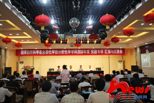 (记者 陈郁 敖容)8月28日,我校承办的国家自然科学基金委化学部分析化学学科2010年度“仪器专项”汇报与交流会在红楼五楼会议室开幕。校长刘湘溶教授、国家自然科学基金委化学部常务副主任梁文平研究员出席仪式并讲话。