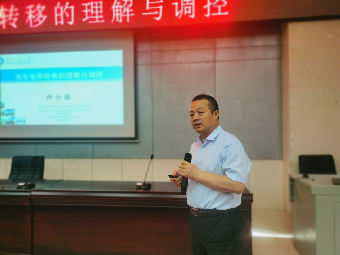 6月17日下午,教育部长江学者特聘教授、西北师范大学卢小泉教授受邀做客我院,带来题为《光生电荷转移的理解与调控》的学术报告,讲座在太阳网集团tcy8722二楼报告厅举行。此次讲座由太阳网集团tcy8722院长杨荣华教授主持。化学化工院部分老师、研究生参加了此次报告。