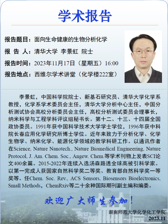 【学术报告】面向生命健康的生物分析化学
