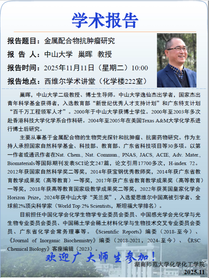 【学术报告】金属配合物抗肿瘤研究