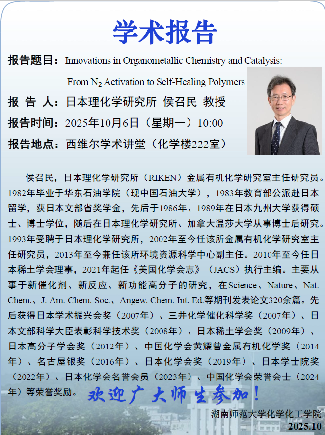 【学术报告】Innovations in Organometallic Chemistry and Catalysis From N₂ Activation to Self Healing Polymers