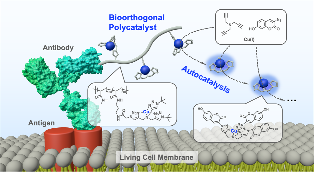 在科学研究和临床诊断中,免疫检测技术,特别是酶联免疫吸附试验(ELISA)因其良好的信号放大能力而被广泛应用。然而,传统的ELISA依赖于酶作为信号放大工具,但酶在细胞环境中的不稳定性和易受干扰的特性,限制了ELISA在活细胞中的应用。新兴的生物正交化学为解决该挑战提供了新思路,除了等当量无催化效果的类型,生物正交催化反应也得到发展,并且常用于细胞内酶、前药等功能分子的激活。 为了解决这一问题,我们课题组开发...