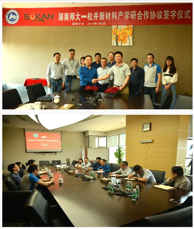 本网讯(通讯员肖自胜)5月9日,  我校与湖南松井新材料有限公司产学研合作签约仪式在该公司宁乡总部举行。湖南松井新材料有限公司副总裁王卫国,我校科技处副处长赵霆雷,石化新材料与资源精细利用国家地方联合工程实验室主任尹笃林、总工程师兰支利等出席仪式。 王卫国介绍了公司的基本情况,他强调公司与我校合作感情基础渊远流长,松井新材作为国家高新技术企业,科技部技术创新基金重点扶持企业一直秉承认真专注的企业精神...